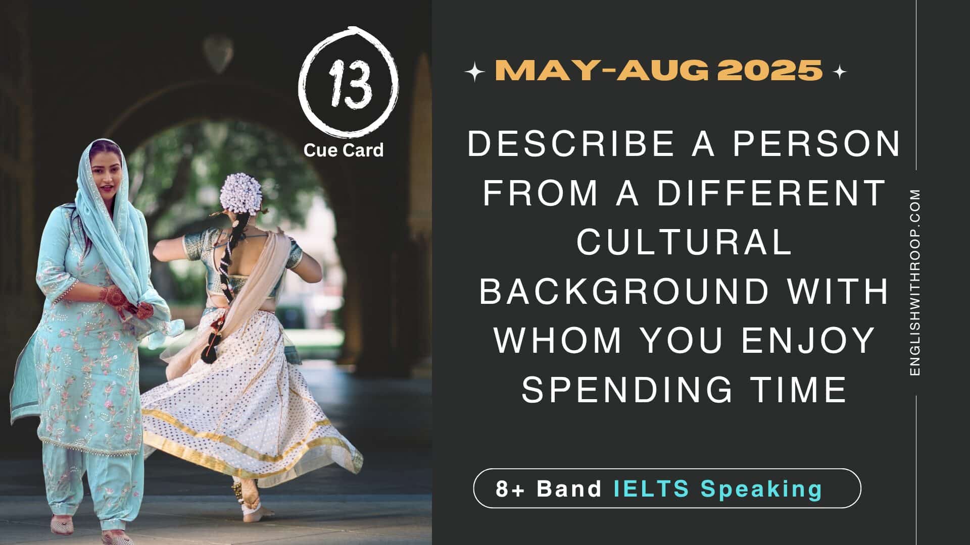 Describe a person from a different cultural background with whom you enjoy spending time Cue Card | 8 band sample | may to august 2025