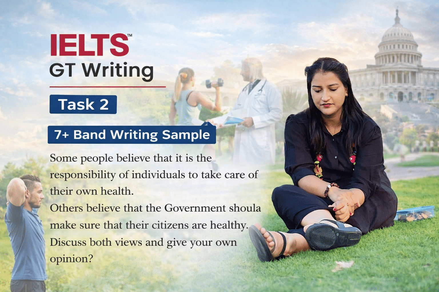 Some people believe that it is the responsibility of individuals to take care of their own health. Others believe that the Government should make sure that their citizens are healthy. Discuss both views and give your own opinion?